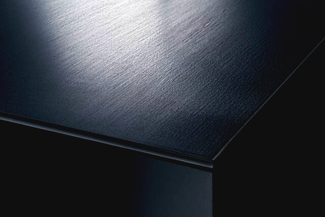 LUNERO steht für kompromisslose Materialkompetenz, innovatives Oberflächendesign und präzise Schweizer Fertigung. Die Kombination aus schwarzer Keramikbeschichtung, sichtbarer Walzstruktur und massiver Kante macht diese Edelstahloberfläche zu einem Statement für moderne Küchenarchitektur.