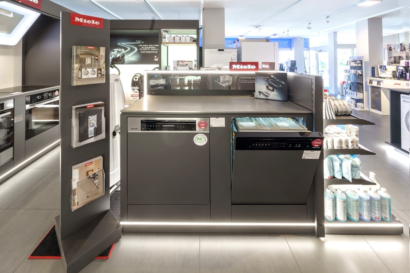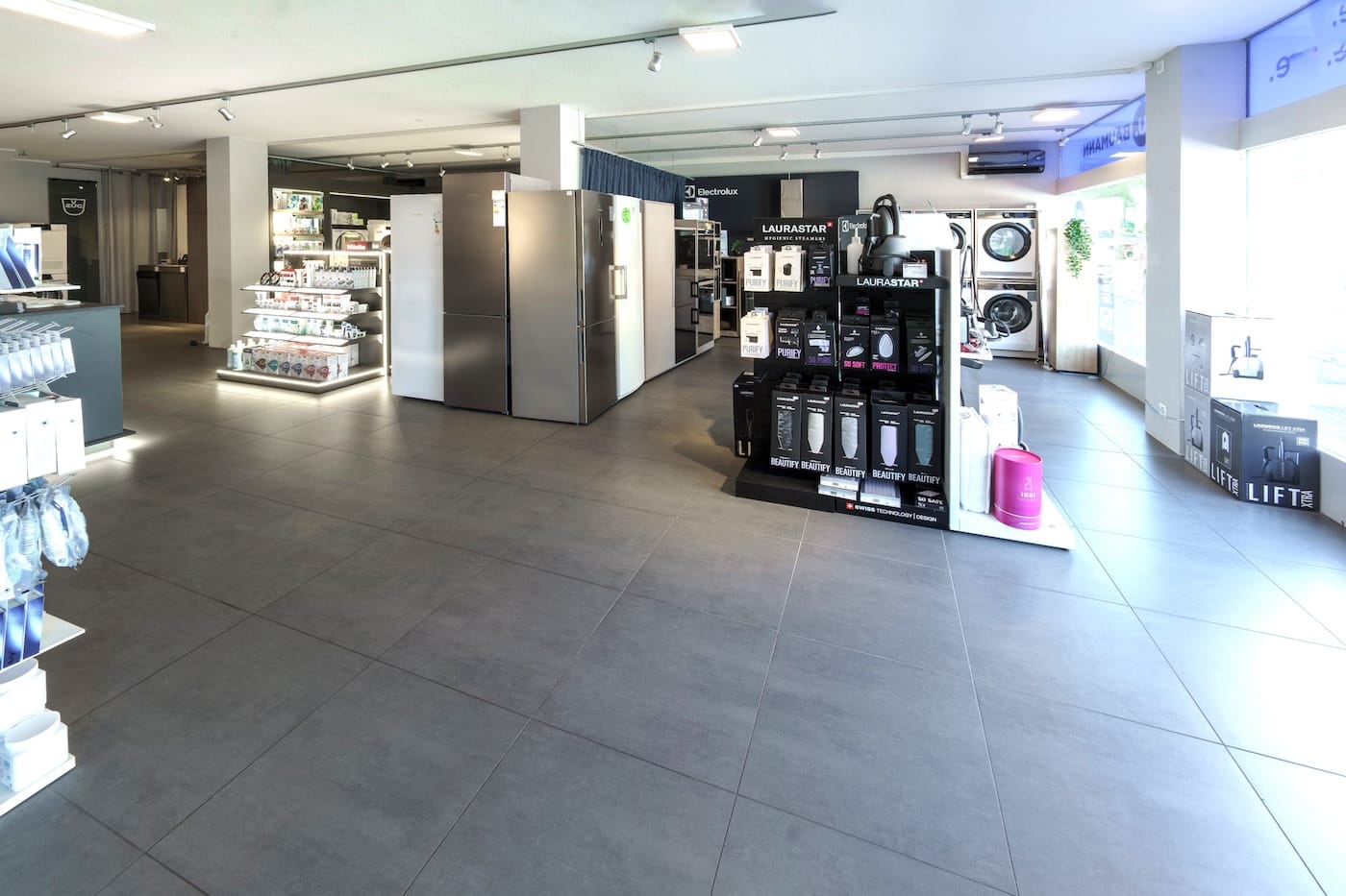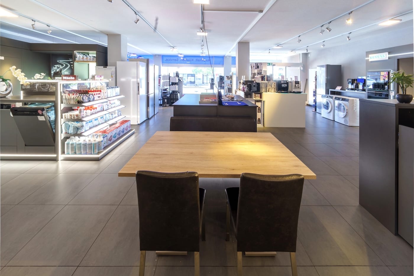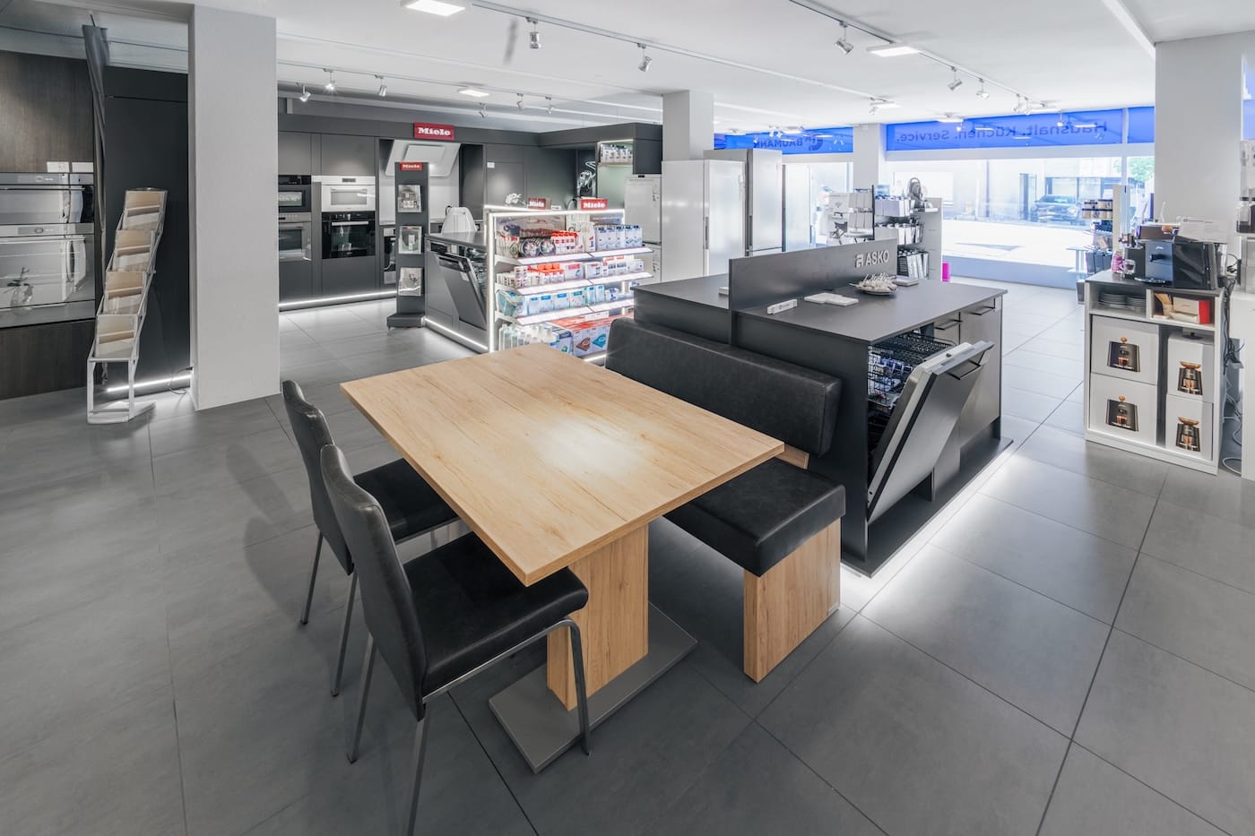 Lassen Sie sich in unserer modernen Ausstellung inspirieren. Gerne zeigt Ihnen unser motiviertes Team eine grosse Auswahl an Haushaltsgeräten namhafter Qualitätsmarken für Ihre Küche und Ihren Waschraum. Zusätzlich beraten wir Sie auch gerne bei der Auswahl einer passenden Jura Kaffeemaschine, bei Kleingeräten sowie deren Zubehör.